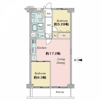 | 間取り | 2LDK | 専有面積 | 61.60m2(18.6坪) 壁芯 |