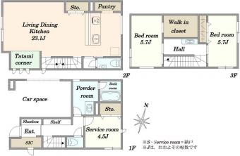 | 土地面積 | 71.32m2(21.5坪) 登記簿 | 建物延面積 | 107.02m2 |