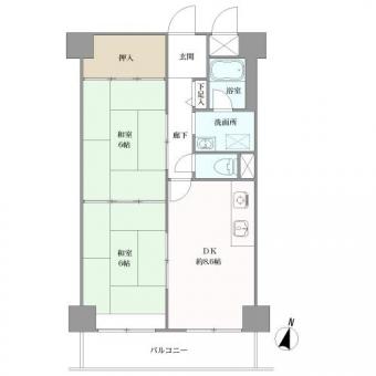 | 間取り | 2DK | 専有面積 | 54.88m2(16.6坪) 壁芯 |