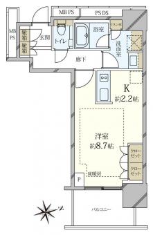 | 間取り | 1R | 専有面積 | 33.41m2(10.1坪) 壁芯 |