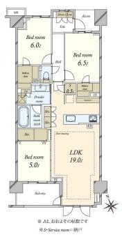 | 間取り | 3LDK | 専有面積 | 83.85m2(25.3坪) 壁芯 |