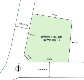 | 備考 | ・北側ブロックは、越境の可能性有(調査中) ・南側公道は、セットバックが生じる可能性有(調査中) 既存建物情報 ?作業所・居宅 ?木造瓦葺2階建 ?1階:82.39平米 2階:74.52平米 ?1990年12月築建築条件無 |