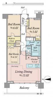 | 間取り | 3LDK | 専有面積 | 72.45m2(21.9坪) 壁芯 |