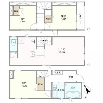 | 土地面積 | 58.31m2(17.6坪) 登記簿 (セットバック要約9.9m2) | 建物延面積 | 80.48m2 |