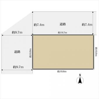 | 接道状況 | 二方 北約7.4m公道、間口:約19.7m 西約9.7m公道、間口:約10.9m | ||