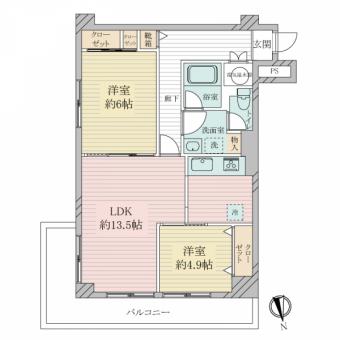 | 間取り | 2LDK | 専有面積 | 61.00m2(18.4坪) 壁芯 |