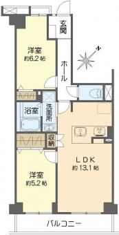 | 間取り | 2LDK | 専有面積 | 58.89m2(17.8坪) |