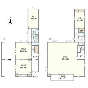 | 備考 | 謄本上の種類は「居宅・事務所」になっております。写真の家具・調度品等は販売価格に含まれておりません。S(サービスルーム)=納戸、事務所面積35.15㎡ |