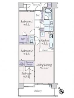 | 間取り | 3LDK | 専有面積 | 75.01m2(22.6坪) 壁芯 |