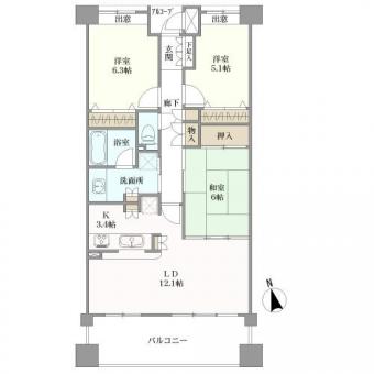 | 間取り | 3LDK | 専有面積 | 76.14m2(23.0坪) 壁芯 |