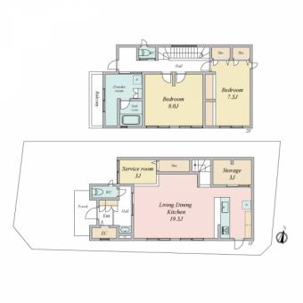 | 土地面積 | 128.70m2(38.9坪) 登記簿 別途私道負担22.40m2 | 建物延面積 | 108.47m2 |