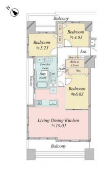 | 間取り | 3LDK | 専有面積 | 80.80m2(24.4坪) 壁芯 |