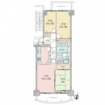 | 間取り | 3LDK | 専有面積 | 73.51m2(22.2坪) 壁芯 |