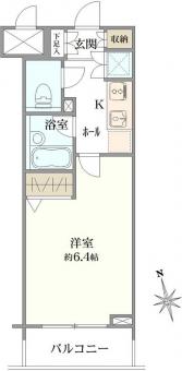 | 間取り | 1K | 専有面積 | 20.72m2(6.2坪) 壁芯 |