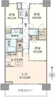 | 間取り | 3LDK | 専有面積 | 71.43m2(21.6坪) 壁芯 |