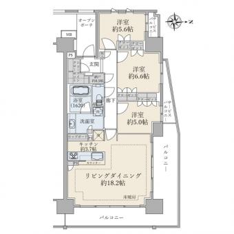 | バルコニー | 24.56m2 | 主要採光方向 | 北東 |
