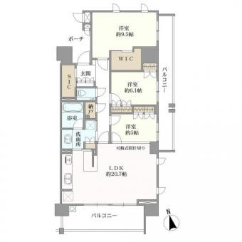 | バルコニー | 25.66m2 | 主要採光方向 | 南 |