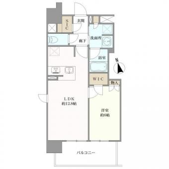 | 間取り | 1LDK+WIC+SIC | 専有面積 | 46.11m2(13.9坪) 壁芯 |