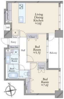 | 間取り | 2LDK | 専有面積 | 67.71m2(20.4坪) 壁芯 |