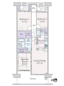 | 間取り | 3LDK | 専有面積 | 80.60m2(24.3坪) 壁芯 |