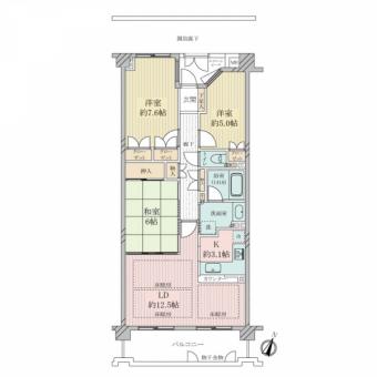 | 間取り | 3LDK | 専有面積 | 76.15m2(23.0坪) 壁芯 |
