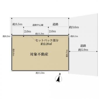 | 接道状況 | 角地 東約5.9m公道、間口:約6.7m 北約3.5m公道、間口:約11.3m | ||