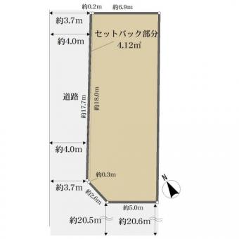 | 接道状況 | 二方 南西約20.5m公道、間口:約5.0m 北西約3.7m公道、間口:約17.7m | ||