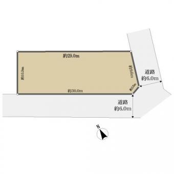 | 接道状況 | 角地 南西約6.0m公道、間口:約30.0m 東約6.0m公道、間口:約9.6m | ||