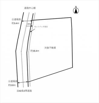 | 接道状況 | 一方 西約3.4m公道、間口:約18.4m | ||