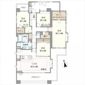 | 間取り | 4LDK+WIC(ウォークインクローゼット) | 専有面積 | 114.24m2(34.5坪) 壁芯 |