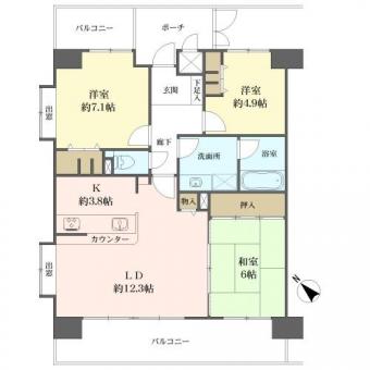 | 間取り | 3LDK | 専有面積 | 77.15m2(23.3坪) 壁芯 |