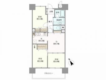 | 間取り | 3DK | 専有面積 | 61.64m2(18.6坪) 壁芯 |
