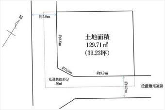 | 土地面積 | 129.71m2(39.2坪) 登記簿 別途私道負担56.00m2 | ||