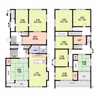 | 土地面積 | 278.59m2(84.2坪) 登記簿 | 建物延面積 | 221.13m2 |