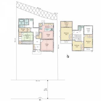 | 土地面積 | 288.13m2(87.1坪) 登記簿 | 建物延面積 | 150.91m2 |