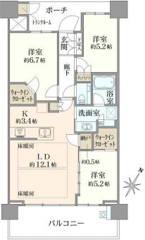 | バルコニー | 12.63m2 | 主要採光方向 | 南東 |