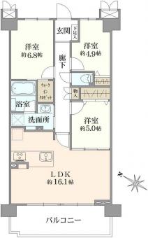 | 間取り | 3LDK | 専有面積 | 73.60m2(22.2坪) 壁芯 |