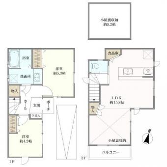 | 土地面積 | 58.99m2(17.8坪) 実測 | 建物延面積 | 58.94m2 |