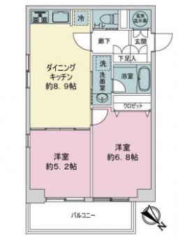 | 間取り | 2DK | 専有面積 | 44.69m2(13.5坪) 壁芯 |