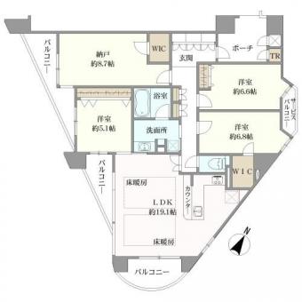 | 間取り | 3SLDK | 専有面積 | 105.32m2(31.8坪) 壁芯 |