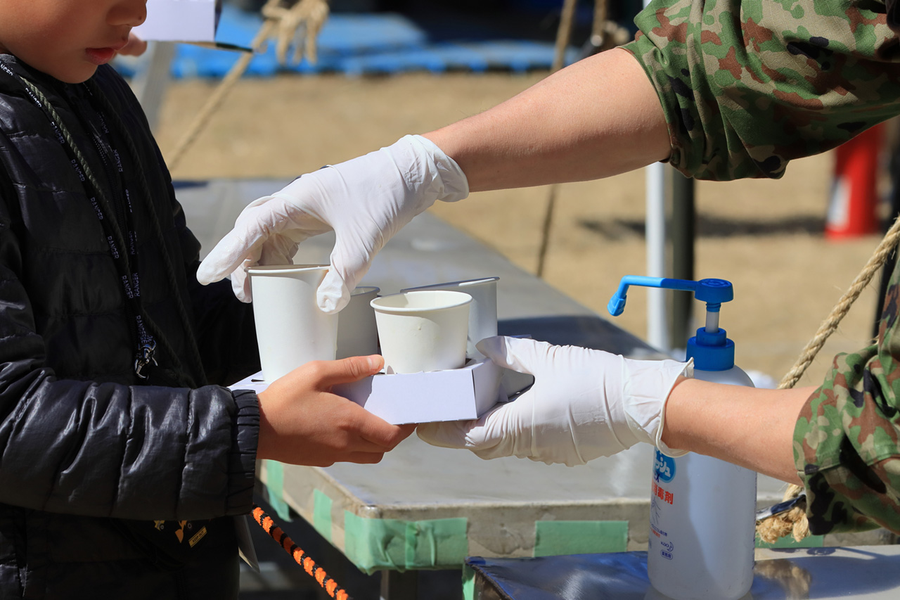 国立市では「国立市総合防災訓練(防災フェスタ)」を毎年開催しています。2025(令和7)年は国立市谷保第四公園とFSXアリーナ(くにたち市民総合体育館)を会場として、国立市や消防、警察、自衛隊、インフラ関係機関、地域の防災組織などが参加します。市民が楽しめるプログラムも用意されています。VRを使った災害疑似体験や初期消火訓練、AEDによる応急手当訓練といった訓練を体験してスタンプを集め、防災グッズとの交換ができます。アルファ化米を使った非常食の炊き出しでは様々な味のご飯が用意されます。