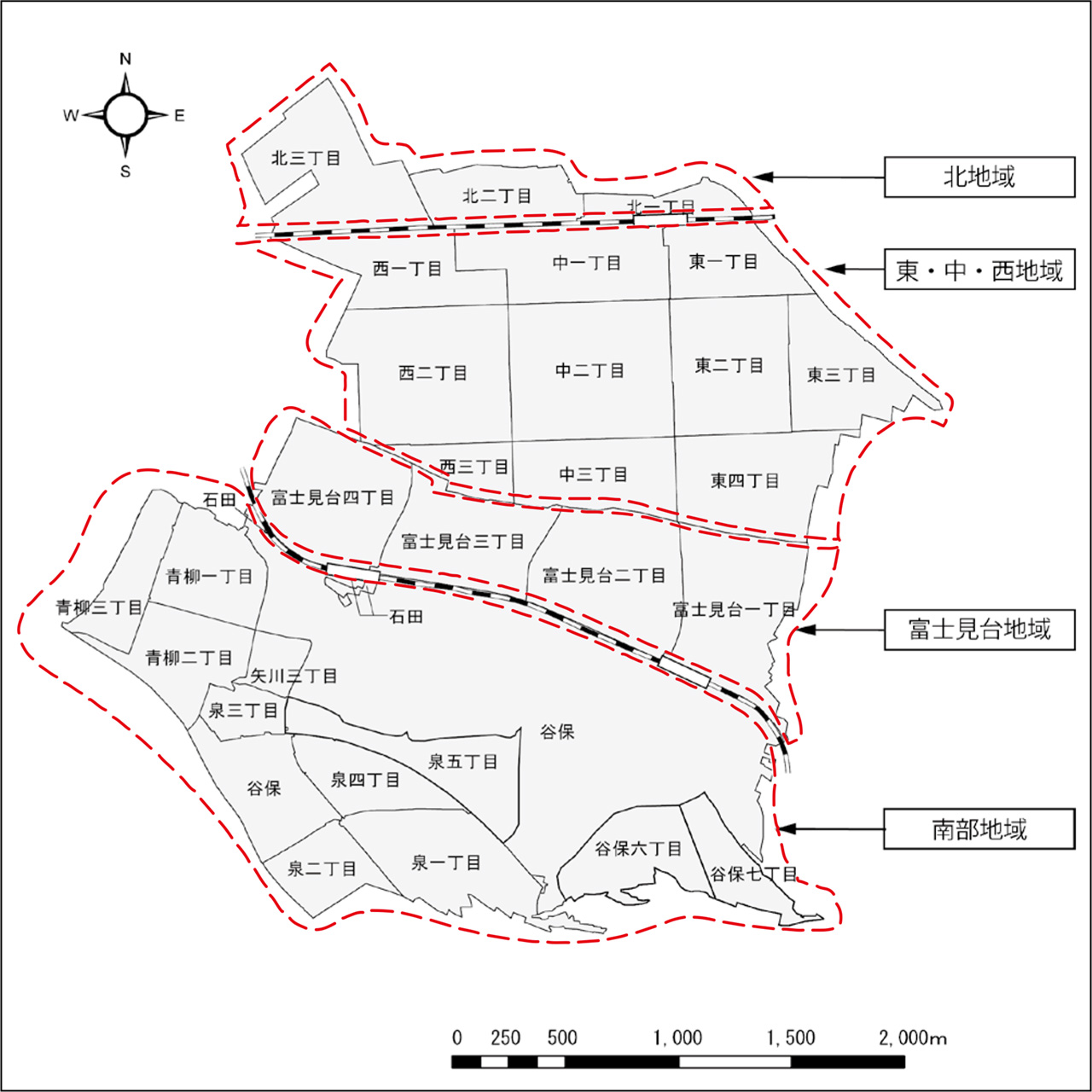 国立市では、都市計画上のマスタープランにおいて、市を4つの地域に区分しています。