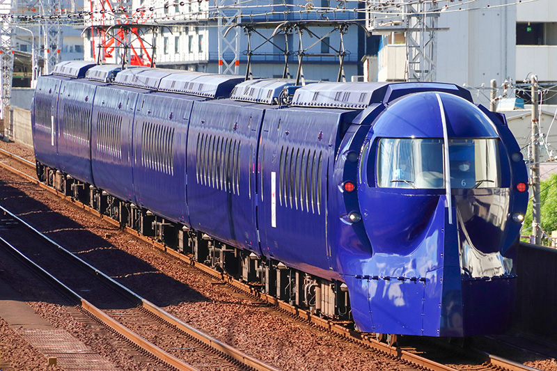 「南海電鉄」の「ラピート」は、1994(平成6)年の「関西国際空港」開港に合わせて登場した空港特急で「難波駅」~「関西空港駅」間を約40分で結ぶ。名称は32,000通の公募から選ばれたもので、「速い」という意味のドイツ語「rapid」を由来としている。「レトロフューチャー」をデザインコンセプトとした「鉄仮面」風の前面や濃紺の車体は高い視認性を誇り、アニメや映画とのコラボでも注目を集めている。航空機を意識した窓や荷物棚など車内設備にも工夫が凝らされ、高速運行を支える技術的改良も重ねられている。こうした独自性と完成度により、「南海電鉄」を代表する関西屈指の人気車両として高い評価を受けている。