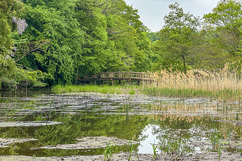 プールは1941(昭和16)年に閉鎖された。跡地は、1955(昭和30)年に釣り堀「石神井釣道場」となり、1986(昭和61)年に閉鎖されたのち公園用地へ編入され、1989(平成元)年に「水辺観察園」(写真)となった。プールの時代からの茶屋「一力」は1995(平成7)年に閉店したが、その隣にあった「豊島屋」(写真左奥)は、現在も営業を続けている。