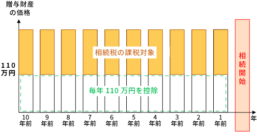 ・ 贈与税の基礎控除(年間110万円)以下の贈与も加算されます。